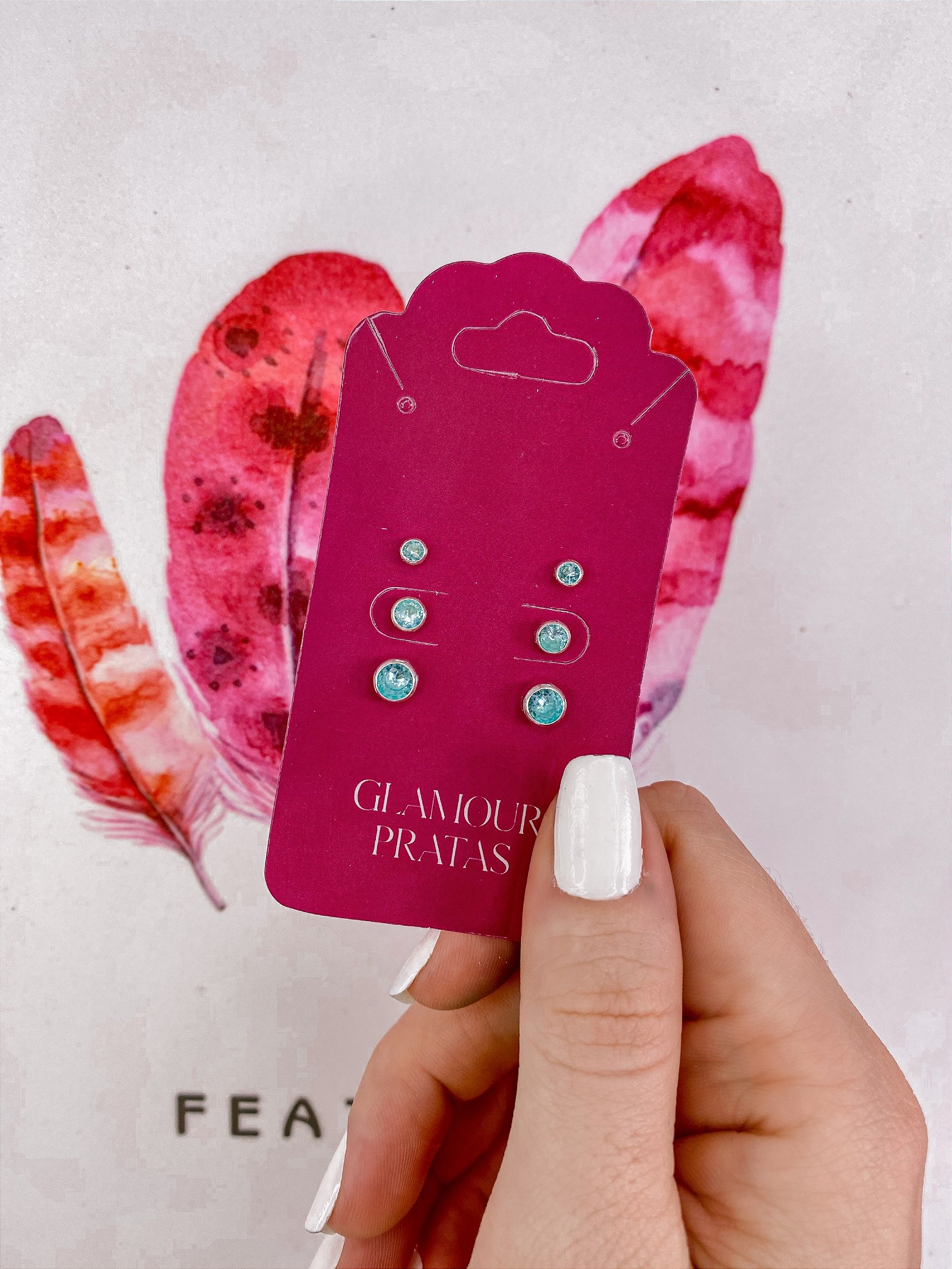 Brinco Trio Ponto De Luz Verde Cravação Inglesa