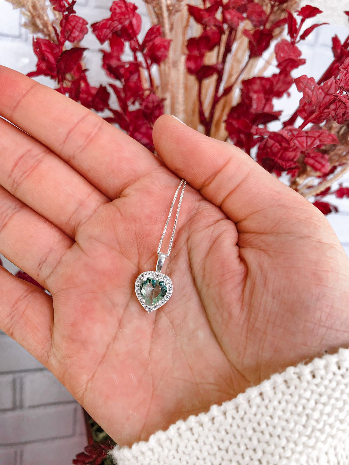 Colar de Coração Brilhante (Esmeralda) 45cm