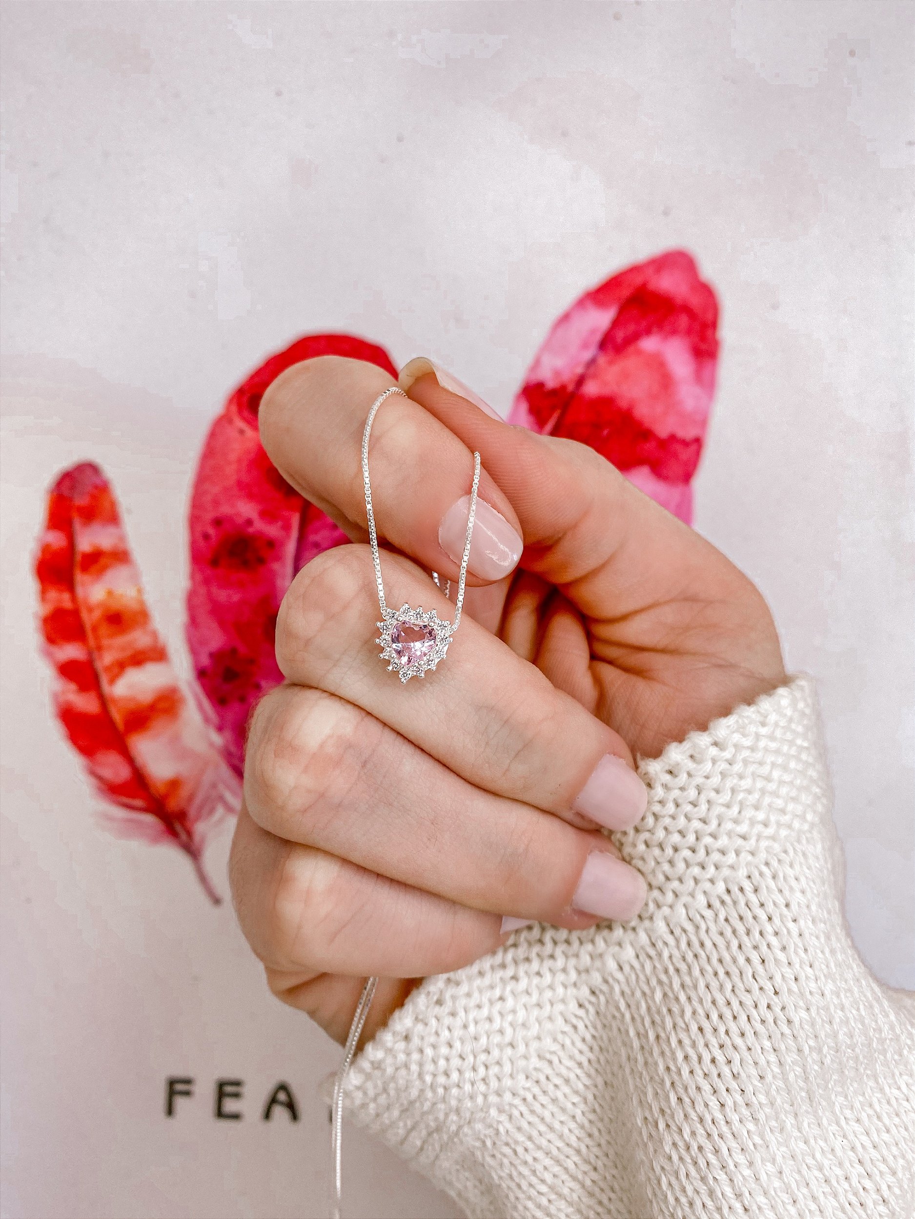 Colar de Coração Brilhante Rosa 45cm