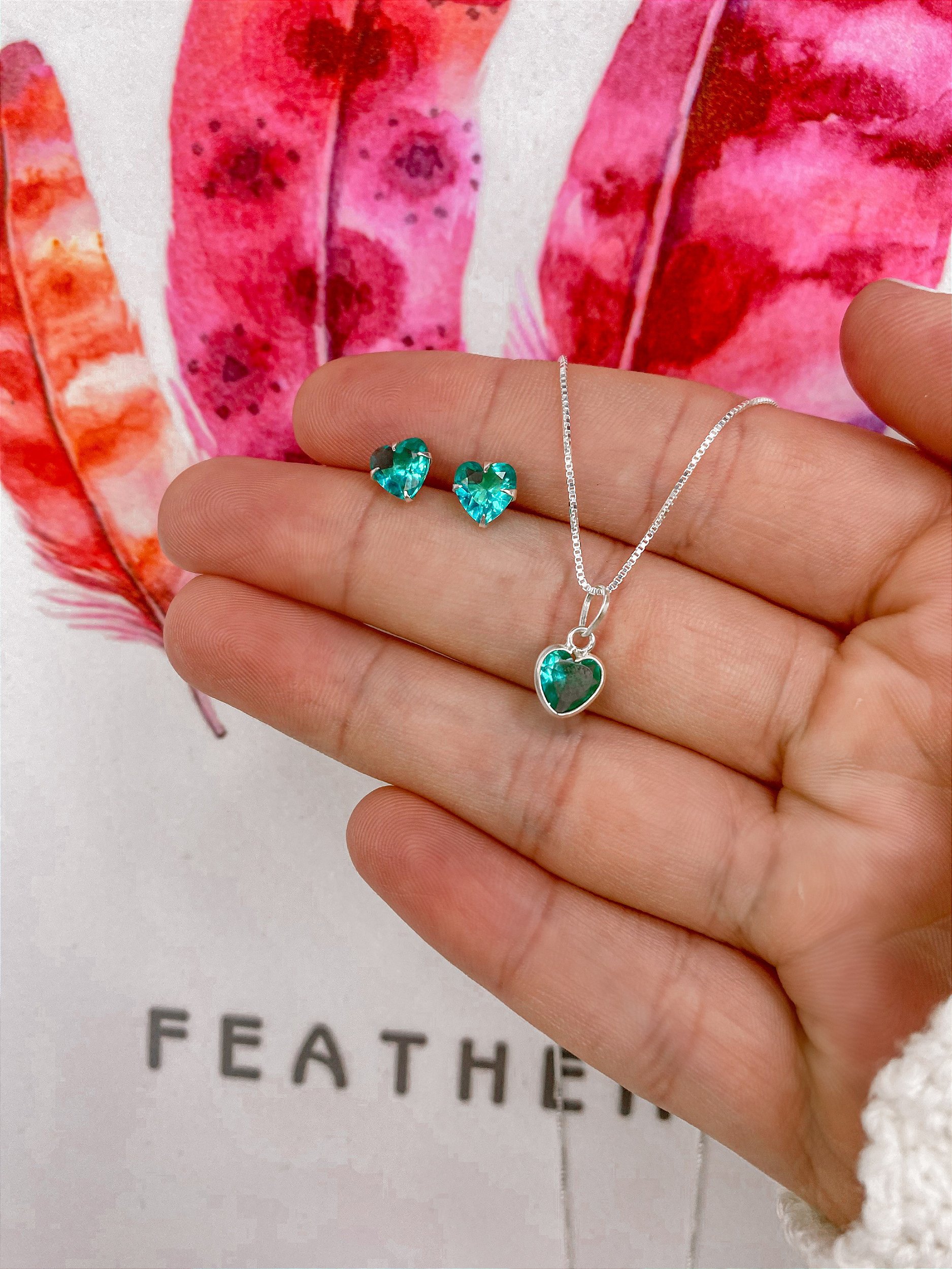 Conjunto Brinco + Colar Coração Turmalina 45cm