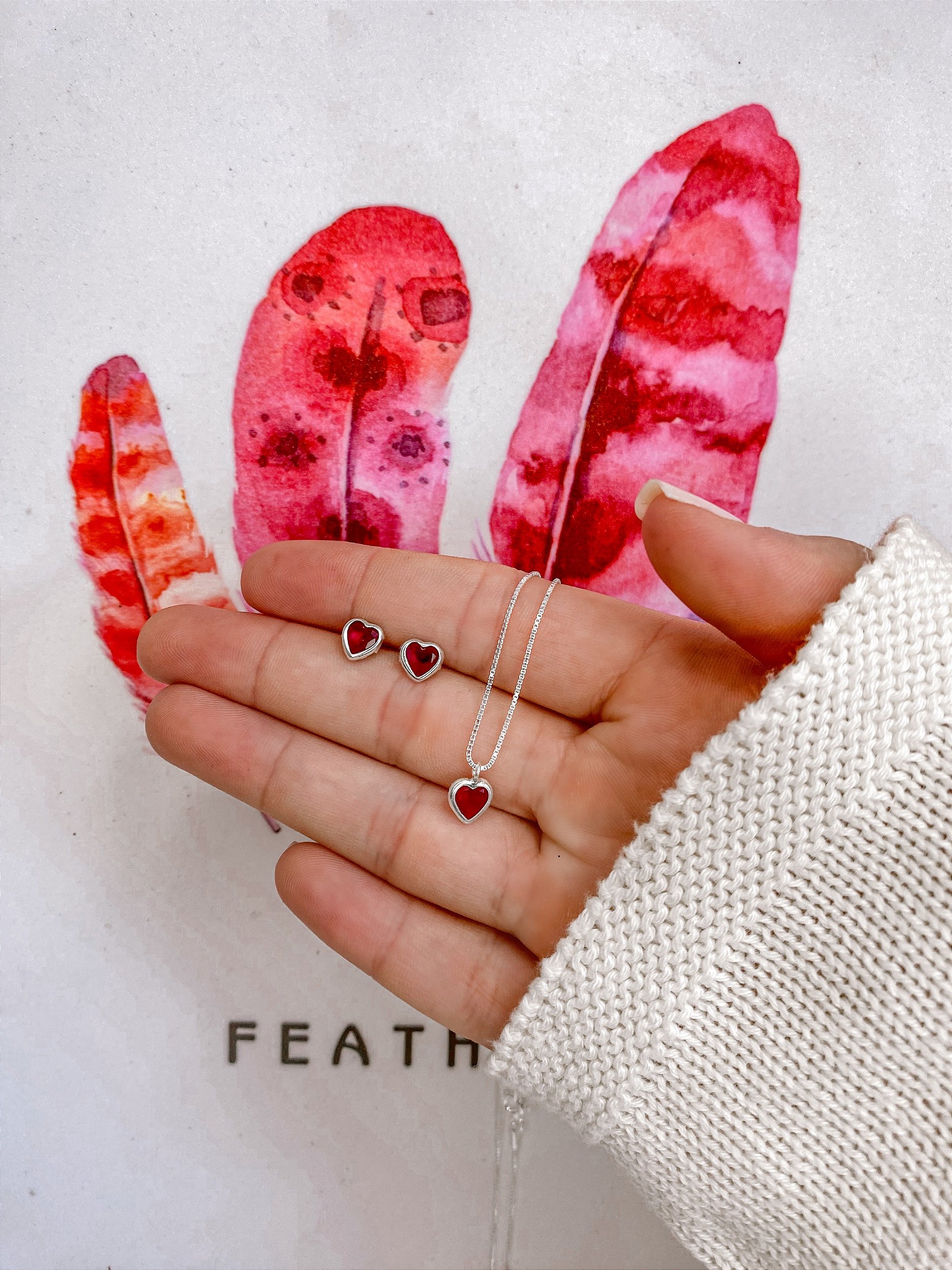 Conjunto Brinco + Colar Coração Vermelho 45cm